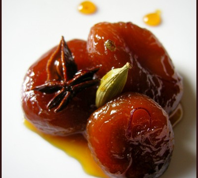 - Chauffer dans une casserole le muscat avec les épices et l'extrait de vanille pour faire évaporer l'alcool. Rajouter le sirop d'agave et les abricots.Cuire à feu doux pour réhydrater les abricots puis monter le feu pour réduire le muscat épicé en un caramel blond qui va enrober amoureusement les abricots.