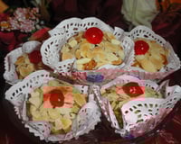 Les amandines 'est une pâtisserie ou gâteaux traditionnel Algérien, trés présent dans nos fête et nos mariages, principalement est fait à base d'amandes et décoré avce des amandes éffilées torifiés pour plus de croquant, ces amandines sont délicieuse et très tendres, en peux les servir avec un jus ou bien avec un bon café.