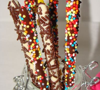 2 boites de mikado au chocolat noir (ou blanc, ou au lait, ou au caramel ... le choix est vaste)