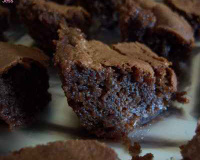 Des brownies tres tres riches en chocolat noir, cacao amer, noix de pecan et cerises confites. L'enfer des anges!