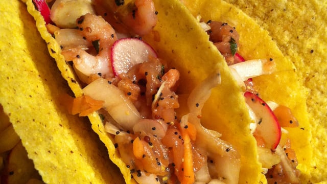 Dresser le plus tard possible. Pour préserver le croquant du Tacos glisser une feuille d'endive entière dans le fond, puis ajouter le mélange. Servir avec une crème fraîche additionnée d'une cs de tarama !