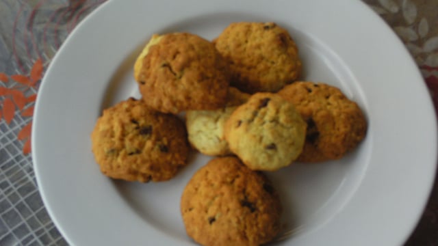 Beurrez généreusement une plaque allant au four et disposez la pâte en tas pas trop près les uns des autres Faire cuire les biscuits à mi-hauteur du four pendant une dizaine de minutes, un peu plus si vous les aimez bien secs et bien dorés. Avant de décoller les biscuits, les laisser refroidir quelques minutes sur la plaque pour ne pas qu'ils cassent.