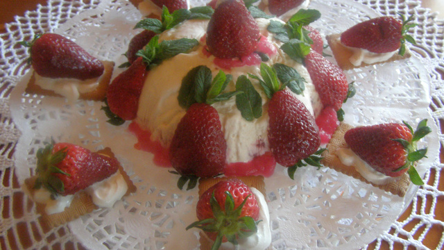 Après avoir démoulé le Sublime et au moment de le servir, le décorer, dessus, avec des fraises entières et quelques feuilles de menthe. - 4
