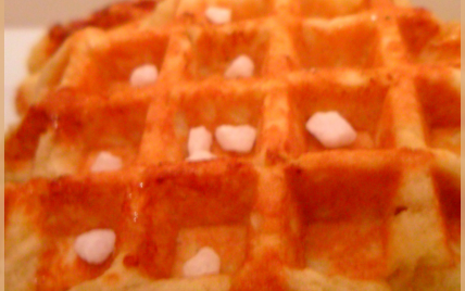 Faites chauffez votre gaufrier et huilez-le. Formez de petites boules et déposez-les dans votre gaufrier. Laissez cuire jusqu'à ce que les gaufres soient bien dorées.