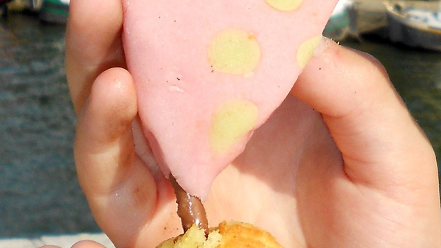 Coller chaque triangle à un biscuit "Mikado"et rajouter de la pâte de façon à faire le tour du biscuit pour que la voile tienne.