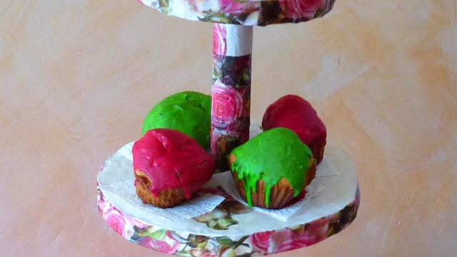 Prenez un pinceau de cuisine en silicone ça marche bien, et étalez la couleur sur les muffins refroidis.