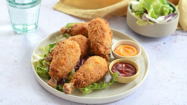 Vous pouvez préparer ces pilons plusieurs jours en avance et les congeler. Le jour J, les sortir 1 heure avant de les paner et de les cuire.