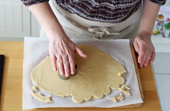 7Détaillez des cœurs dans la pâte nature à l'aide d'un emporte pièce.