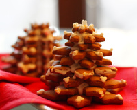 Déposez vos gâteaux sur le papier sulfurisé et faites les cuire pendant 8-10 minutes dans un four préchauffé à 180°C. Quand ils sont froids vous n'avez qu'à les décorer à votre façon. Pour faire des sapins, il faut superposer les étoiles de la plus petite à la plus grande en les collant avec un peu de glaçage.