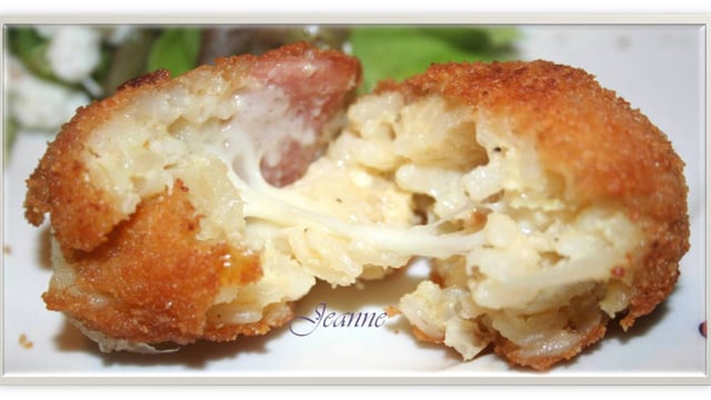 Ces boulettes de riz frites sont farcies d'un mélange fondant de mozzarella salami et de basilic. Gros comme des oranges, les suppli se servent en entrée accompagnées d'une petite salade verte.