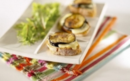 Dresser les tartines en plaçant sur le pain une aubergine, une tranche de fromage bien au centre, une aubergine. Servir éventuellement, avec quelques feuilles de mesclun sur l'assiette. Poivrer et passer au four 5 minutes.
