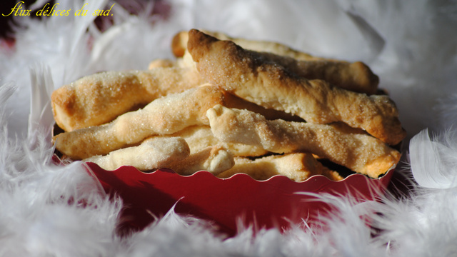 Après ce temps, pétrir encore un peu la pâte. Prendre des morceaux de la grosseur d'une mandarine, formez un boudin coupez des tronçons de 2 cm. Les roulez sur le plan de travail, pincez chaque extrémité légèrement. Versez le reste de sucre dans une assiette, roulez les zézettes dans le sucre. Sur 2 plaques à four déposez une feuille de papier cuisson, puis disposez les zézettes sur la feuille. Mettre au four th 170°C, pour 15/20 min.