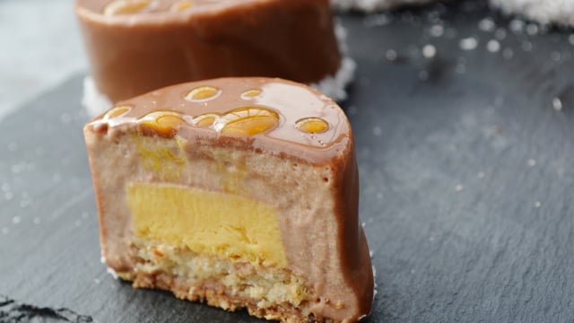 Un petit gateau oû se mêle la douceur du chocolat au lait dans une mousse très légère, l'exotisme de la noix de coco réveillé par l'acidité du fruit de la passion et tout cela avec un jeu de textures : du croustillant, du moelleux, du fondant, du mousseux dans un seul but : le plaisir des papilles.