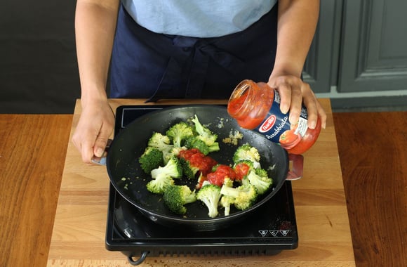 3Ajoutez la sauce Arrabiata et mélangez.