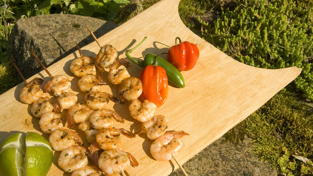 Les enfiler sur des brochettes et cuire au BBQ.