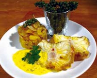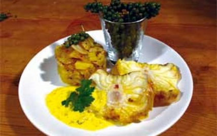 Badigeonner la lotte avec le curcuma, une cuillère d'huile d'olive de Lesbos, le poivre vert de Penja concassé et la fleur de sel au piment d'Espelette. - 2