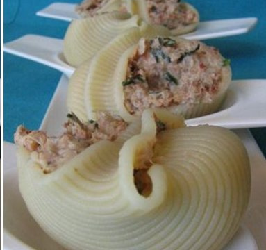 Répartissez la farce réservée, dans les Lumaconis.