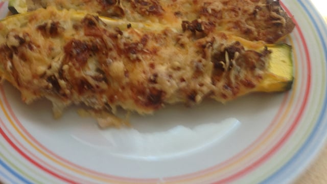 - Il suffit de mélanger l'intérieur des courgettes avec les steaks hachés, de faire revenir tout ça avec un oignon et de la mascarpone (doser selon votre goût). Sel, poivre.Redisposer la garniture au centre des courgettes coupées dans le sens de la longueur, parsemer de gruyère râpé et enfourner 30 minutes environ !