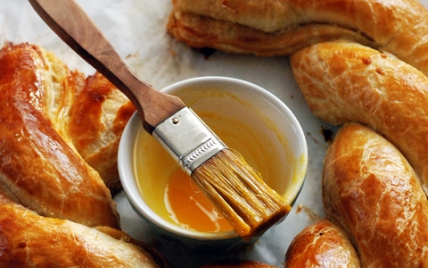Versez le jaune d'oeuf dans un petit bol avec 1càs d'eau et mélangez. Avec un pinceau, badigeonnez le tour de la plus petite des pâtes, attention ne débordez pas. - 3