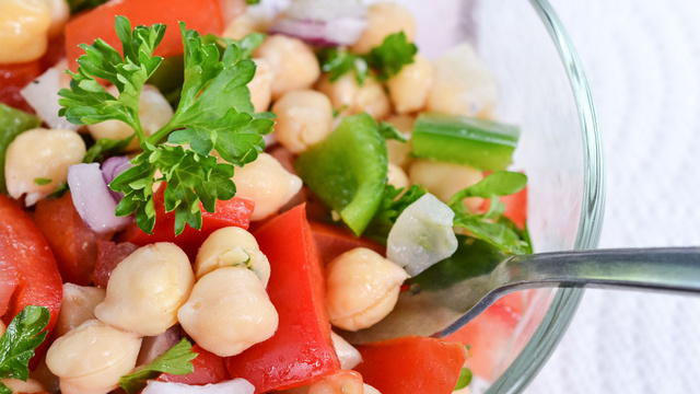 Vous aimez les pois chiches, mais vous ne savez pas comment les cuisiner ? Cette recette de salade tombe à pic. Facile à faire, idéale pour un repas entre amis, cette salade croquante de pois chiches sent bon le soleil, mais aussi les vacances. D'ailleurs, vous pouvez aussi bien servir cette salade de pois chiches en accompagnement ou bien en entrée. Donc, si vous manquez d'inspiration pour le repas du midi ou du soir, vous devez impérativement la tester. Enfin, pour la parfumer, vous allez faire une délicieuse sauce à base de quelques gouttes d'huile d'olive, le jus d'un citron vert et de quelques épices. Ici, une pincée de paprika et de piment d'Espelette suffisent à relever le goût de cette délicieuse salade de pois chiche. Vous allez vous régaler !