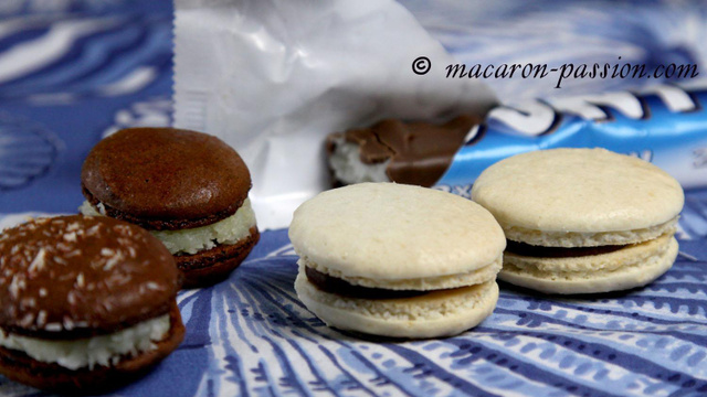 Si vous êtes amateur de 'goût de paradis', voici un macaron façon Bounty. Dans cette première version, les coques sont parfumées avec de la vraie noix de coco.