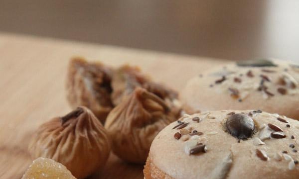 Garnissez une des coques de votre mélange de tofu soyeux. Déposez dessus quelques fines lamelles de gingembre confit, et quelques petits morceaux de figues séchées. Fermez le macaron, et le tour est joué ! Idée déco pour les coques,