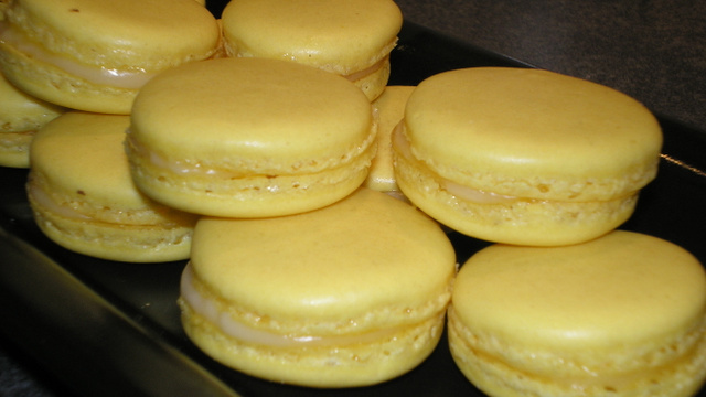 Voici de délicieux macarons fourrés au lemon curd.