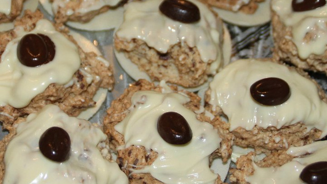 A l'aide de 2 cuillères à café, prélever des billes de pâte et les placer sur les hosties.