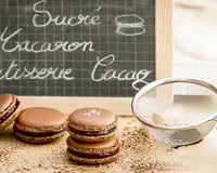 Pour les coques, tapissez 2 plaques de four de papier cuisson. Mixez très finement les amandes en poudre, le cacao et le sucre glace à l'aide d'un robot.