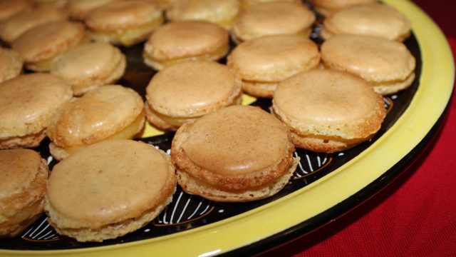 Laissez refroidir. Enfournez les macarons pendant 10-12 minutes, au bout de 5 minutes, tournez votre plaque. Laissez refroidir les macarons et décollez-les. Déposez une cuillère de crème au citron sur la face plaque de la coque du macaron et recouvrez avec une autre coque.