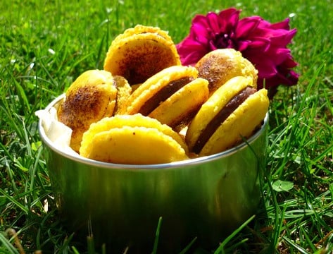 Des macarons au chocolat au lait et fruits de la passion, une alliance magique qui fait frémir les papilles. C'est d'ailleurs un délicieux parfum que l'on retrouve chez Pierre Hermé et ses célèbres macarons Mogador. Ici, la ganache est composée de confiture fruits de la passion ainsi que de chocolat au lait qui atténue l'acidité du fruit.