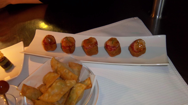 Il suffit ensuite d'assembler les macarons de la façon suivante. Dans votre emporte pièce, monter successivement 1 rondelle de pomme de terre confite, 1 cuillère a café de confit d'oignons, une seconde rondelle de pomme de terre confite, une rondelle de chorizo, puis une dernière rondelle de pomme de terre.
