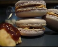 De jolis macarons avec à l'intérieur un mélange de foie gras et de confiture de figues.