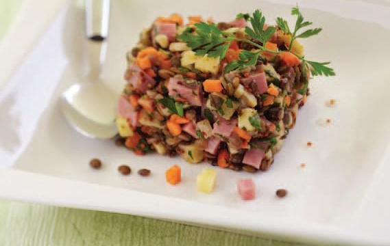 Idée : Ajoutez un morceau de porc demi-sel, de saucisse à cuire ou de lard lors de la cuisson des lentilles.