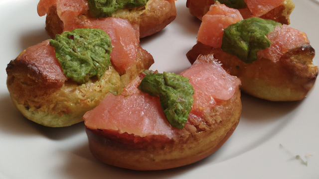 Incorporez le saumon découpé au préalable en petits morceaux, le pesto, le basilic ciselé et mélangez délicatement. Versez votre préparation dans vos moules.