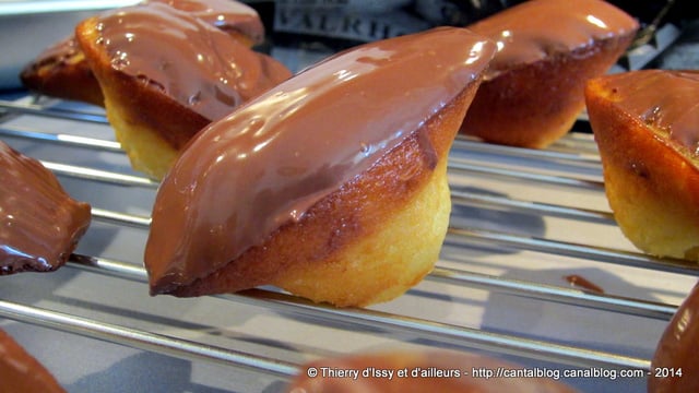Au terme de la cuisson, laisser refroidir complètement les madeleines avant de les démouler. Faire fondre votre chocolat au bain marie et tremper chaque dessous de madeleine avant de laisser cristalliser à température ambiante en les posant la tête en bas sur une grille.