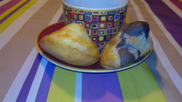 Dans une plaque d'empreintes à madeleine, versez vos préparations. Faîtes des marbrés, des mélanges ou des madeleines toutes simples. Ajoutez un carré de chocolat blanc si vous le souhaitez.