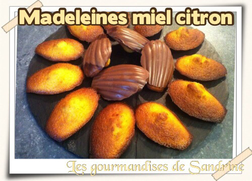 Des bonnes madeleines au goût de citron. L'utilisation du miel à la place du sucre relève le goût du citron. Et pour plus de gourmandise, une coque en chocolat.