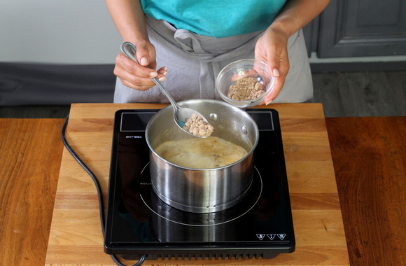7Ajoutez ensuite le fond de veau, remuez bien l'ensemble.