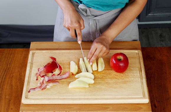 3Epluchez les pommes et coupez-les en quartier.
