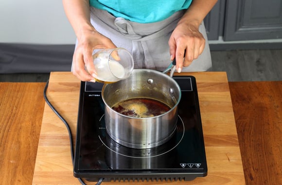 Ajoutez peu à peu la bière afin de déglacer le caramel.