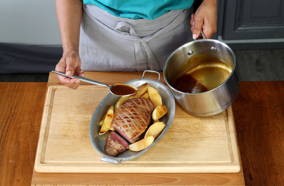 9Taillez le magret en tranche et arrosez-le de sauce à la bière.