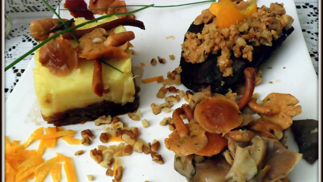 Rajouter la purée de pommes de terre et quelques champignons sur le dessus.