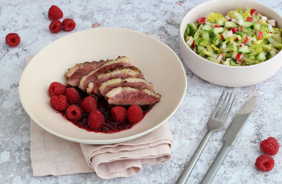 L'acidité de la framboise se marie à merveille avec le Magret de Canard, dans ce plat raffiné et facile à préparer !
