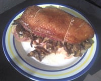 Préchauffer le four à 220°C (th. 7/8). Recouvrir un magret de la poêlée de champignons tiédie puis du deuxième magret, chair contre chair. Ficeler l'ensemble de plusieurs tours de ficelle de cuisine.