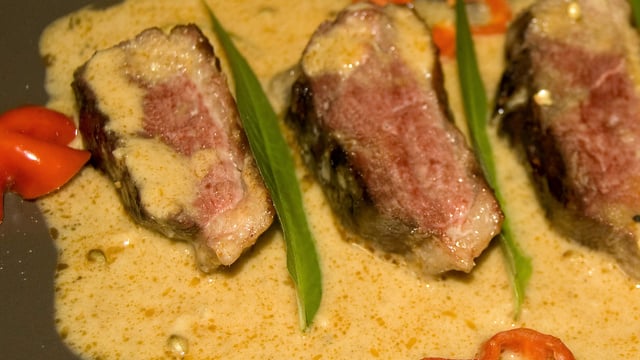 Laisser mijoter 5 minutes avant d'y ajouter les tranches de magret.