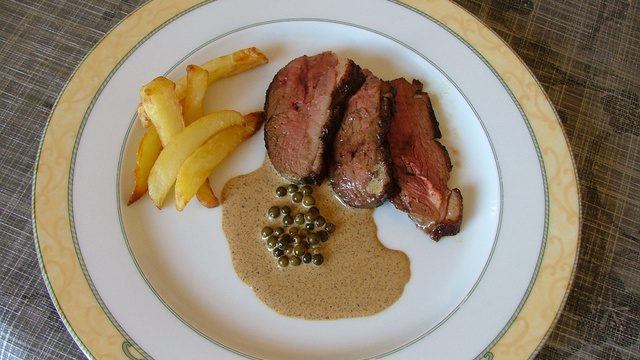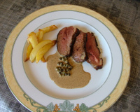- 3Déglacez la poêle avec le vinaigre. Ajoutez le poivre et la crème et laissez chauffer 2 min. Pendant ce temps, tranchez les magrets.