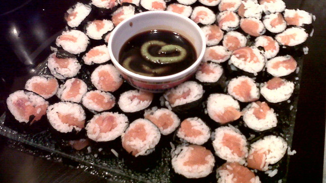 Pour finir... Les makis se dégustent avec de la sauce soja, du gingembre mariné et de la wasabi. On peut aussi en faire avec de l'avocat, des carottes, du concombre...