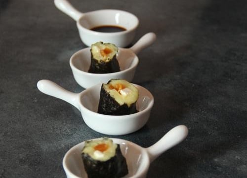 Taillez des makis d'environ 2 cm et dégustez avec une sauce saja et vinaigre basalmique.