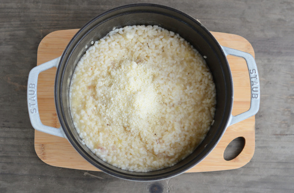 3Retirez la casserole du feu, et ajoutez le parmesan râpé.
